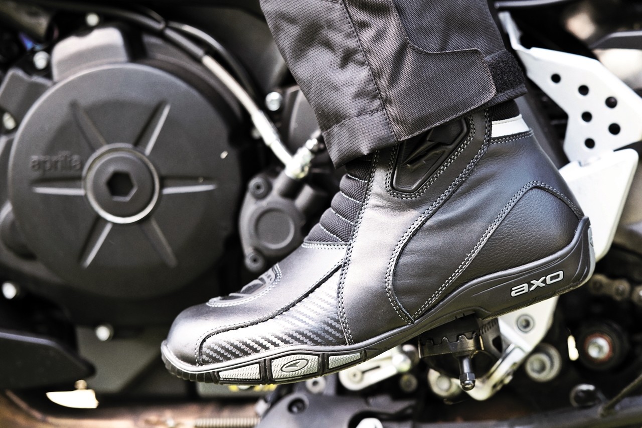 Para que tú también te puedas beneficiar de las casi cuatro décadas que los italianos llevan confeccionando ropa de alta calidad para los motoristas, Axo pone a tu disposición unas botas de caña alta sumamente seguras, calentitas e impermeables. Y todo ello por un precio más que razonable, sólo 179 euros.