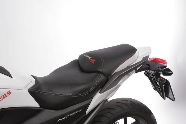 El asiento es biplaza, siendo independiente el lugar que ocupa el piloto y el pasajero. Se ha aumentado la superficie de contacto respecto al asiento de serie. Además, para hacerlo más confortable, su túnel interior reparte la presión de forma adecuada por toda la superficie.