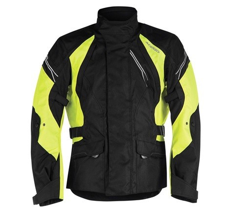 Acerbis ofrece este invierno que acaba de llegar hace nada la chaqueta Acerbis Triskele que, por sus características, esta orientada al uso turístico en recorridos de media o larga distancia. Como primer detalle llamativo es el uso de colores de alta visibilidad para que precisamente, en condiciones de lluvia o niebla, el resto de vehículos pueda percatarse más fácilmente de nuestra presencia.