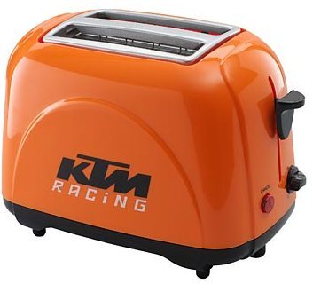 La colección para el 2008 de KTM, dejando a un lado las motos, ya ha visto la luz. En ella podrás encontrar desde accesorios como cascos, guantes, o cazadoras a utensilios de lo más variopintos como tiendas de campaña, tazas, sillas, o incluso dos de las novedades para este año: una tostadora y un albornoz.