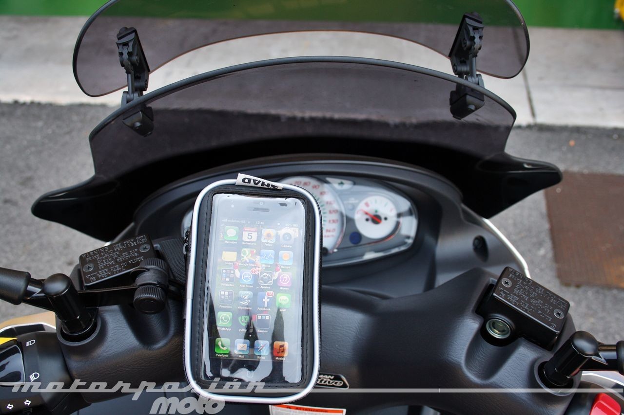CONTRAS: El teléfono se mueve solidario al manillar y puede llegar a entorpecer el radio de giro si choca contra el depósito. Si el móvil necesita carga, el cable puede sufrir desconexiones constantes.
