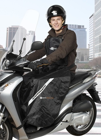 Aunque los cubre piernas no son unos elementos muy comunes en España, en otros países como Italia o Francia están a la orden del día. Bueno, para ser justos todavía es puede ver algún paisanín con un casco Nolan de los tiempos en los que Kenny Roberts no llegaba ni a la estribera y cigarrillo en la comisura de los labios sobre una Puch Monza con pantalla y visera verde protegido por una especia de delantal de zapatero. Pero volvamos al presente donde Kappa ha lanzado la SK203, un cubre piernas universal para los días lluviosos.