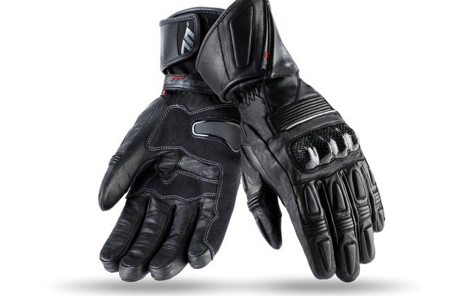 Los guantes SD-R23 para mujer y SD-R11 para hombre tienen un protector de PVC en la palma y protecciones de carbono en los nudillos. Están hechos en piel bovina full analine y piel sintética y tiene tiras reflectantes que aportan visibilidad en condiciones de poca luz. En la muñeca tienen doble cierre para ajustarlos a la mano.
