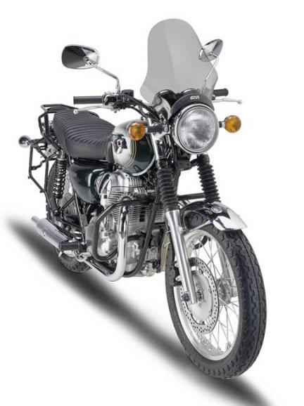 Los nuevos elementos que se pueden incorporara a la Kawasaki W800 son los siguientes: cúpula ahumada, portaequipajes y defensas de motor en negro y alforjas. Veamos cada una de ellas en detalle.