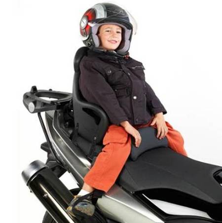 Givi a comenzado a comercializar el S650 destinado especialmente para transportar niños con seguridad en la mayoría de los scooter del mercado. Como se puede observar, se trata de un asiento con sujeción lateral que se ancla sobre el propio de la moto. A su vez dispone de unos estribos regulables incorporados para que el niño pueda colocar los pies.