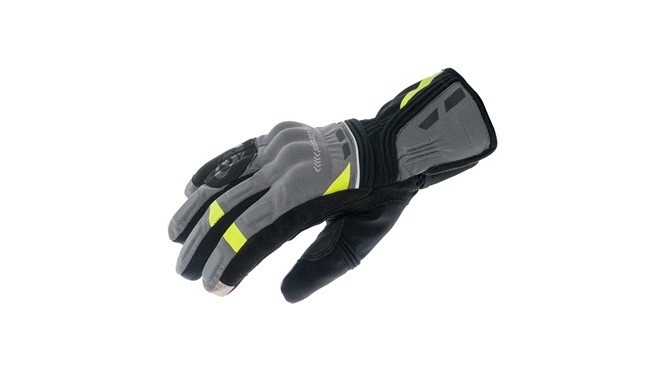 Los detalles prácticos destacables son las inserciones de silicona en la cara interior de los dedos índice y medio para mejorar el agarre al manillar, el visor Wiper en la mano izquierda para limpiar la pantalla del casco y el tejido capacitivo en las pintas de los dedos pulgar e índice para el uso de pantallas táctiles sin tener que quitarnos los guantes.