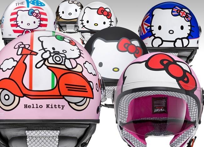 En lo que se refiere al diseño podemos encontrarnos con varios colores y con la gatita Hello Kitty en diferentes versiones, desde acompañada con las banderas americana, británica o italiana hasta a lomos de una scooter. Con su cara al completo o para simular que las orejas pertenecen a la dueña del casco, haciéndolo así un look divertido.
