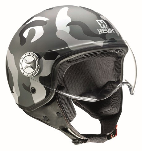 Hevik ha incorporado recientemente a su gama de cascos jet el HV20 Mimetic. Su nombre da toda una muestra de declaración de intenciones ya que el motivo principal de la decoración son tonalidades basadas en la ropa militar de camuflaje urbano.