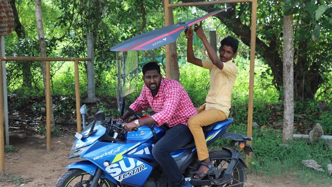 En consecuencia, 'Sepal Shield' ha creado, y como literalmente dice su nombre, un escudo para la moto. En otras palabras es una pantalla con techo que es universal, es decir, que se puede instalar a cualquier moto en cuestión de segundos.
