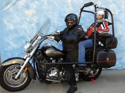 Evita impactos y choques de todo tipo al pasajero. Incluso consta de unas luces montadas en la parte más alta de las barras para tener visibilidad suplementaria, y por supuesto todo este sistema es desmontable. Así cuando vayas a coger la moto en solitario, te ahorras el peso de más, y que la gente te mire de forma extraña...