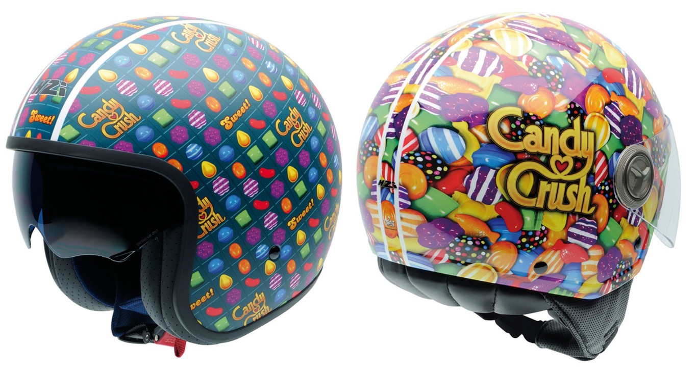 Que el Candy Crush es uno de los juegos para móvil que más se ha extendido es algo que está fuera de toda duda, pero que no nos lo podamos quitar de la cabeza mientras vamos en moto ya es que se nos está yendo de las manos. Pero a NZI no le parece tan mala idea y han decidido reflejar nuestra afición por las gominolas con esta serie de cascos.