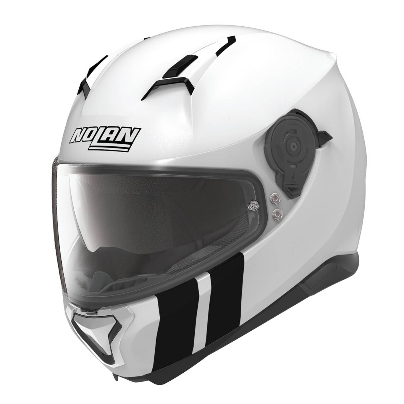 Con dos medidas de calota externa fabricada en policarbonato para unas tallas que van entre la XXS y la XXXL, el Nolan N87 inaugura el sistema de visera basculante (con patente aún en trámite) con un funcionamiento específico que evita aperturas y cierres involuntarios al mismo tiempo que maximiza la visión, permite un mejor sellado y puede montar un Pinlock de mayor tamaño.