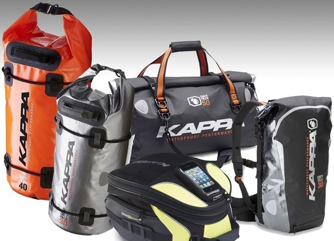 La primera de ellas es la Kappa WA404S, bolsa deportiva de sillín de 50 litros de volumen con asa y correas ajustables. Por otro lado, las Kappa WA401S y WA405F son unas bolsas cilíndricas de sillín de 30 y 40 litros pensadas para el uso off road en colores plateado y naranja respectivamente. Por último, la mochila Kappa WA402S que combina la impermeabilidad y confort con diseño.