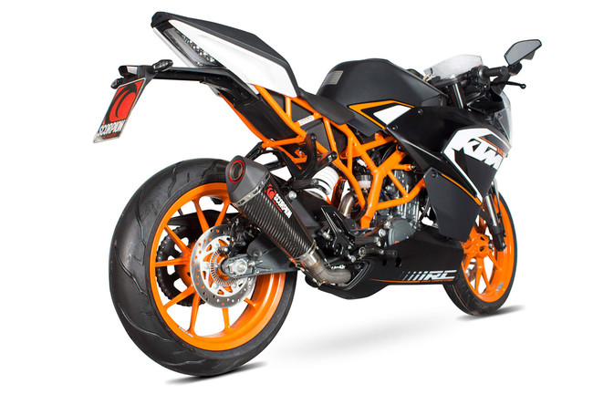 Scorpion se ha puesto manos a la obra para sacarle algo más de “chicha” a la KTM RC 125, la deportiva más accesible y económica de la marca austriaca que genera un gran interés entre los usuarios del carnet A1 hace soñar a los más jóvenes (y a los no tan jóvenes). Para todos ellos va esta chuchería en fibra de carbono, acero o titanio.