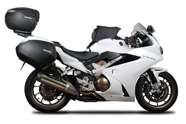 Si disponéis una Honda VFR800F de última generación como la que probamos para vosotros el año pasado, sabéis que la propia marca ofrece un kit de maletas laterales y top case para darle un aire mucho más viajero. Pero si queréis buscar en la industria auxiliar, SHAD tiene ya disponible un completo kit formado tanto por las dos maletas como el baúl trasero y una bolsa sobre depósito.