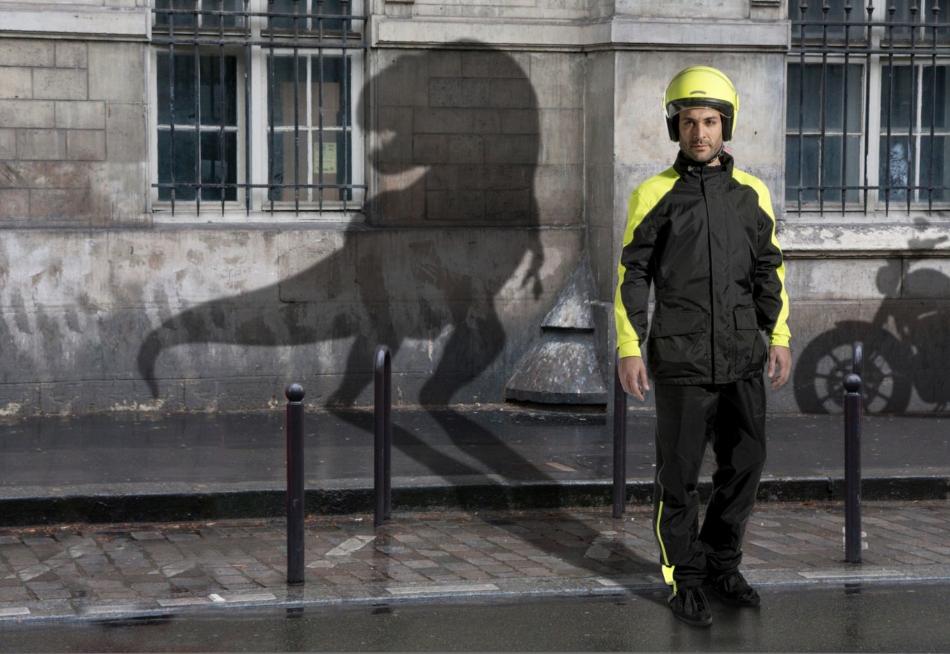 El set Tucano Urbano Diluvio Rex es el tope de la gama, cuenta con inserciones reflectantes en la espalda, mangas y costados de la cazadora y una banda, también reflectante en la zona externa de las perneras del pantalón. Así seguro que te verán sin problemas.