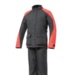 El ajuste de la chaqueta se hace con cremallera y velcro en las mangas mientras que la parte baja de los pantalones cuenta con cremalleras para ajustarse a las botas. Una capucha desmontable al cuello nos permite, una vez bajados de la moto, evitar que se nos moje la cabeza. Incorpora también dos bolsillos impermeables.