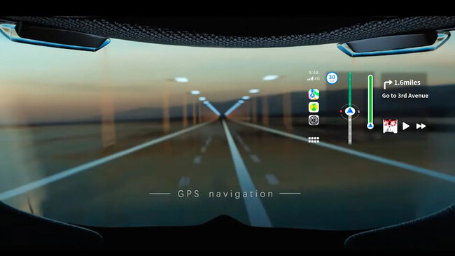 Al encenderlo, proyecta una pantalla en el campo de visión del conductor, y según sus creadores, "la imagen corresponde a la de una televisión de 55 pulgadas a una distancia de 3 metros". Tiene un campo de visión de 24º.