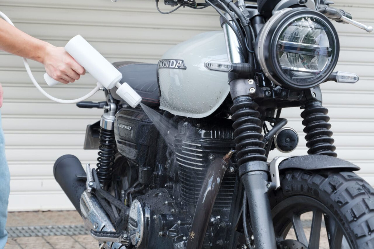 Lavar la moto es un ritual tan necesario como tedioso. El barro incrustado en las llantas, los mosquitos en la cúpula o el polvo que se acumula tras una ruta acaban obligando a pasar por la gasolinera, a buscar una máquina libre y a pelear con las mangueras que muchas veces o no tienen jabón, o no funcionan bien o te acaban rayando la moto si das desde muy cerca.