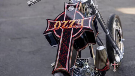 El depósito es pura poesía metálica: una cruz celta en relieve, su nombre “OZZY” en letras doradas y un diseño artesanal que parece forjado en los hornos del mismísimo infierno. El guardabarros trasero rinde homenaje a su inseparable Randy Rhoads con un guiño directo a la guitarra Polka Dot Flying V. Incluso el interruptor de pastilla de una guitarra eléctrica sirve para activar los LED del conjunto. Sí, su moto tenía alma... y sonido.
