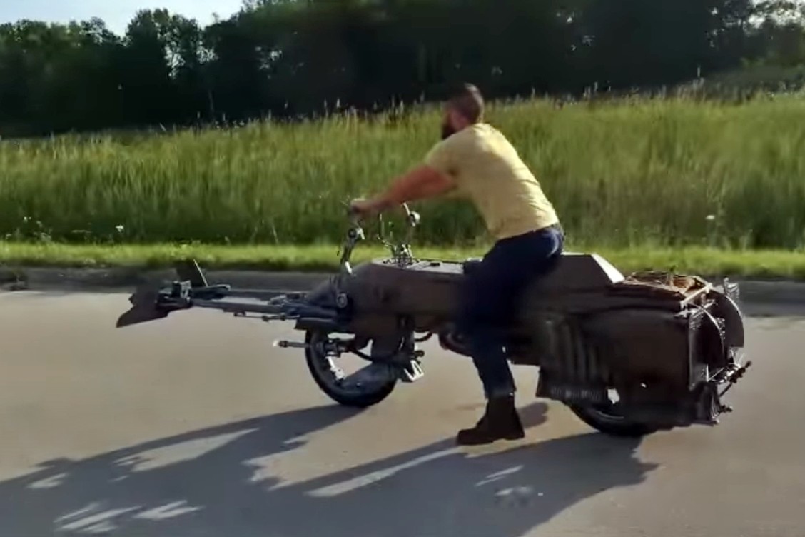 Puede que te suene la gente de Vintage Works (Suamico, Wisconsin) de haberlos visto en la televisión, pero además de ser gente bastante estrafalaria también tienen talento y manos suficientes como para construir de cero lo más parecido a una Speeder, la moto voladora imperial de la Guerra de las Galaxias.