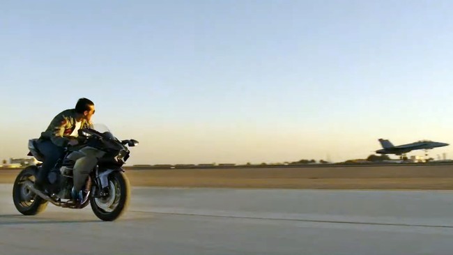 En esta ocasión Maverick se pondrá a los mandos de la vieja GPZ900R para recordar aquellos maravillosos años, pero también tendrá la oportunidad de recorrer a todo gas las pistas de despegue sobre una Kawasaki Ninja H2.