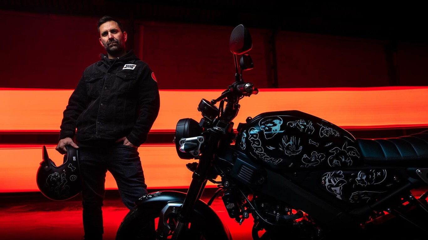 La XSR125 de Coté Escrivá es una de esas creaciones. Su estilo artístico Lowbrow y underground hace referencia a la cultura popular de los años 80 de la infancia de Coté, añadiendo un toque de frescura contemporánea a la neoclásica XSR125 y rindiendo homenaje a los dibujos animados de los 80 que tanta nostalgia le producen. Los numerosos y llamativos añadidos de Coté al último modelo de la gama Yamaha Sport Heritage comienzan con un guardabarros delantero pintado en negro con viñetas infantiles que trabaja en armonía con el depósito de combustible y los paneles laterales de la carrocería, centrados en torno a una máscara de faro de estilo retro.