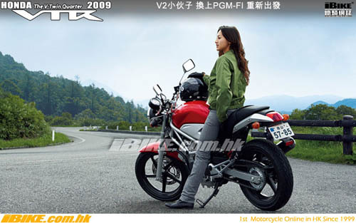 En este nuevo lanzamiento, la moto ha sufrido algunos retoques en su motor V2 de 250 cc, lo que la hace dar solo 30 CV a 10500 rpm, dos caballos menos que el modelo anterior y un par de 2,2 Kg/m a 8500 rpm. Aunque sigue montando inyección electrónica PGM-FI y catalizador con sonda lambda para pasar homologaciones mas estrictas que las asiáticas. El resto de la moto también ha sufrido un restyling, pero muy discreto. Quizá lo mas destacable es que el depósito ahora llega hasta los 12 litros, lo que junto con la inyección le permite dar cifras tan escandalosas como 2,5 litros a los 100 Km. Aunque ese récord sea a 60 Km/h. El peso en seco también ha crecido de 155 Kg a 161 Kg, seis kilos que hay que buscar muy detenidamente porque a simple vista no se aprecia.