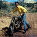 Una de las pasiones ocultas de Elvis eran las motos. No lo demostró demasiado públicamente, aunque es cierto que en algunas de sus películas (31 filmadas en Hollywood, casi nada) sí que apareció montado en ellas, incluida una Triumph 650 Bonneville ‘Desert Sled’ en rojo y plata en su comedia western de 1968 “Stay Away Joe”.