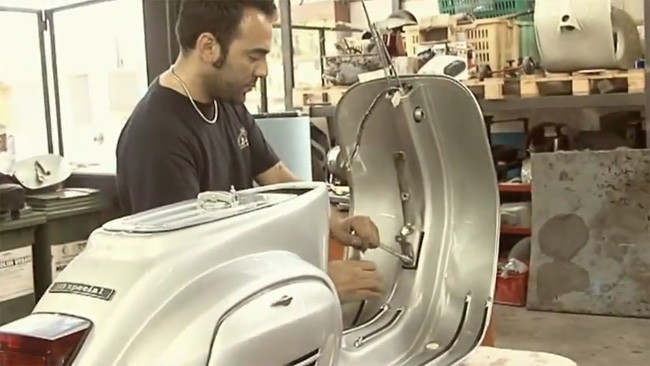 Una vez situada la historia vamos a echarle un ojo al vídeo que han preparado en il vespaio, un taller de restauración de Vespa situado en la costa norte mediterránea de Italia, entre Pisa y La Specia. Todo un maratón el que se pega Franchesco para tener lista una de estas Vespa 50. Aunque el vídeo tiene algo de truco (y no dura las siete horas) porque el motor lo tienen preparado antes, con lo que se ahorran unas cuantas horas. De todas maneras el trabajo que hacen es bastante bueno, y la alegría de oír el motor funcionando tras este atracón de trabajo merece la pena.