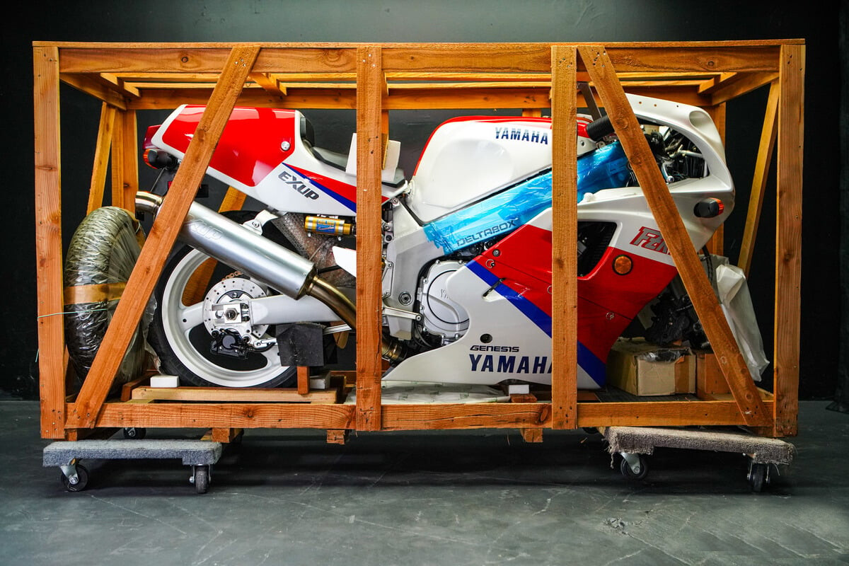 La unidad en cuestión no es una FZR cualquiera. Se trata de una OW-01, una de esas motos de homologación limitadas que Yamaha lanzó a finales de los 80 para correr (y ganar) en Superbikes. Lleva 35 años metida en su caja original, con cero kilómetros, como si el tiempo se hubiese congelado en el almacén de un concesionario canadiense.