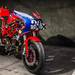 El motor de dos cilindros y un litro de cilindrada cambia radicalmente su comportamiento al trabajarse los conductos de admisión y escape, recibir un volante de inercia Ducati Performance, pistones de alta compresión, embrague anti-rebote y filtros de aire K&N que se complementan con un escape realizado por Supermario y una nueva ECU programable Mycrotech.
