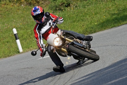 La parte mecánica es otra cosa, ya que el monocilindrico Minarelli-Yamaha es el mismo que monta la Yamaha MT03 y la extensa saga Yamaha XT o la Aprilia Pegaso. Con sus 47 CV a 6250 rpm se adapta perfectamente al estilo de la Mulhacén. Lo acompaña un cambio de cinco marchas rápido y preciso, que permite apurarlo por completo. El tarado de las suspensiones es un poco blando, quizá para compensar el durísimo asiento, pero suficiente para una conducción cómoda, que lo único que obliga es a hacer una conducción con antelación, para evitarse sorpresas en medio de la curva.