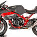 Entre otros componentes también la dotó con una horquilla telescópica invertida ajustable. En la zaga trasera destaca un basculante trasero de aluminio heredado de una Triumph Daytona 675, y frenada firmada por Brembo.