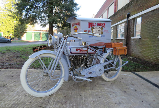Es difícil saber qué pensarían los moteros en 1916 cuando se ofrecía esta Harley-Davidson Model J Package Truck Sidecar pero en los tiempos que corren es sin lugar a dudas una pieza muy original y preciada por coleccionistas de estas monturas de antaño.