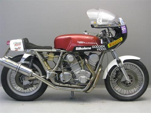 Godden engineering es una empresa fundada en 1970 por Don Goddeen, uno de los desconocidos campeones del Europeo de Grasstrack (Desconocido para nosotros, pero no en su círculo) Don inicialmente se dedicaba a fabricar chasis para Seedway y Grasstrack, pero rápidamente inició también la fabricación de motores. Y como su trabajo estaba muy bien hecho sus motores de 500 cc con árbol de levas en cabeza se convirtieron en un estándar de la categoría. La evolución lógica era fabricar un motor bicilíndrico, el Goden 1000 cc SOHC V-Twin construido en 1980.