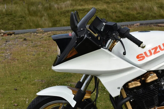 Bien, pues innovaron. Pero cuando lo acabaron rompiendo fue cuatro años después, en el '84. Ahí llega la Katana que nos interesa: la del faro escamoteable. Por primera y última vez en una moto, encontraríamos un faro que se abría y cerraba. Y tanto les gustó a los japoneses que hasta Mazda les copió la idea.