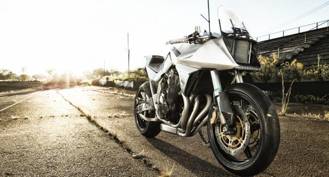 Mantiene las líneas maestras del diseño original a excepción del colín, recortado y convertido en monoplaza. El asiento sigue las reminiscencias del original, con un mullido generoso y dotado ahora de un cosido transversal. Depósito con doble toma y detalles en azul-verdoso en varios puntos, así como un escape 4-1 corto completan el diseño que, esta vez sí, me gusta cómo queda.