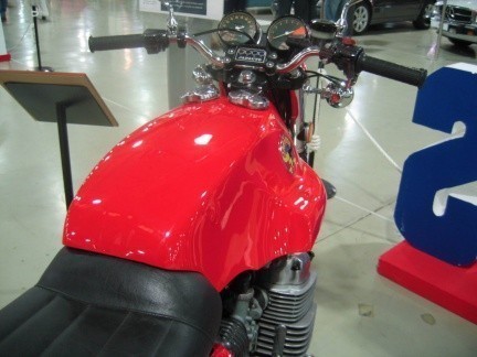 Los datos y la historia los he sacado de la ficha que había en el stand junto a la moto. Disculpad la calidad de las fotos, pero al tener que quitar el flash para que no se saturasen las imágenes con brillos, han salido casi todas movidas. Tendré que hacerme con una cámara mejor.