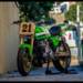 En la parte delantera nos encontramos con un híbrido entre componentes de Suzuki GSX-R 1991 y la horquilla y los frenos de una Kawasaki ZX-6R 2006. Detrás la donante del basculante y el amortiguador fue una Kawasaki Zephyr 750C.