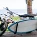 Tiene pinta de ser comodísimo llevar una tabla de surf en una moto; yo uso scooters desde que compré mi primera Vespa iris allá por 1988, he tenido brugman, sportcity, lead, piaggio x7...y lo cierto es que siempre son mi único vehículo (no tengo coche) para todo el año, y vivo en una zona (Bilbao) con un tiempo no precisamente caribeño; el caso es que he llevado en muchas ocasiones la moto con trastos grandes, por ejmplo una Fender Stratocaster con su estuche cuadrado y un pequeño ampli, pero no me veo cruzando el puente de Rontegi (los que sean de la zona sabrán del infierno que supone cruzar ese puentecito cuando hay viento) con una tabla adosada a la moto. Vamos, que en plan vacilón y quedar gauy con las churris bien, pero no acabo de ver ese invento demasiado útil, aunque igual en Bali si lo es.