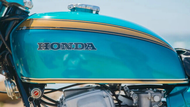 El sistema de embrague es distinto, la cadena de distribución también, al igual que numerosos componentes internos del bloque y la culata. Los carburadores son cuatro Keihin de 28 mm fabricados específicamente para esta moto, con una cámara de flotación compartida y, atención, bomba de aceleración. Una solución que jamás volvió a verse en una CB750 de producción. El freno delantero y las horquillas tampoco coinciden con ningún modelo posterior. Incluso detalles como la tapa cromada del motor de arranque son únicos.