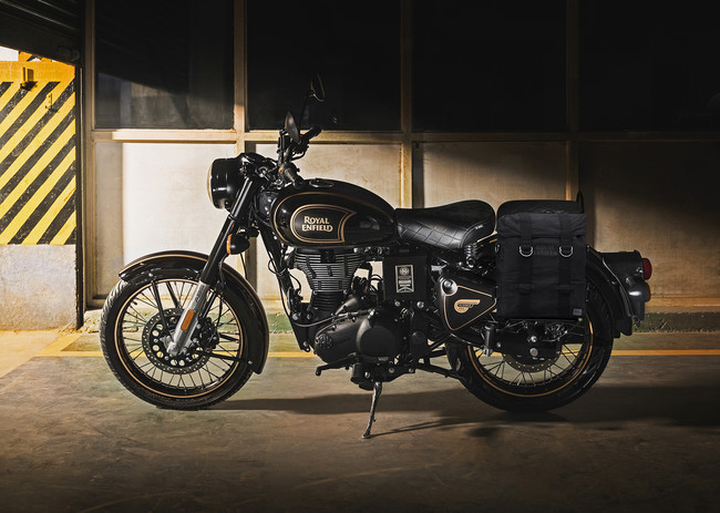 En esta ocasión, la Classic 500 Tribute Black dispone de una placa conmemorativa 'Fin de Serie', de accesorios extra como las alforjas laterales y de una pintura bitono con un destacado negro brillante y unos detalles del tanque de gasolina perfilados a mano como antaño.