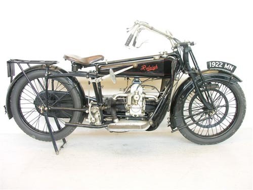 Raleigh empezó su andadura como fabrica de motocicletas a principios del siglo XX y perduró intermitentemente hasta 1971. Con su sede establecida en Nottingham (Reino unido) empezó a fabricar bicicletas mucho antes que motos. En 1901 se fabricó la primera Raleigh con un motor Schwann colocado sobre la rueda delantera a la que transmitía el movimiento mediante una correa dentada. Raleigh fabricó motos hasta 1906, cuando dejó de fabricar motos por culpa de una caída de ventas. Posteriormente volvería a la producción en los periodos 1920-1933 y 1958-1971. La foto que ilustra el post es de un modelo de 1922.