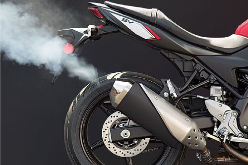 Seguro que te has dado cuenta de que, en un día frío, el escape de tu moto, o el de un coche en un semáforo, suelta una especie de nube de vapor. La causa es que, cuando se quema la gasolina, los átomos de carbono e hidrógeno del gas se combinan con el oxígeno del aire para producir dióxido de carbono y monóxido de hidrógeno.