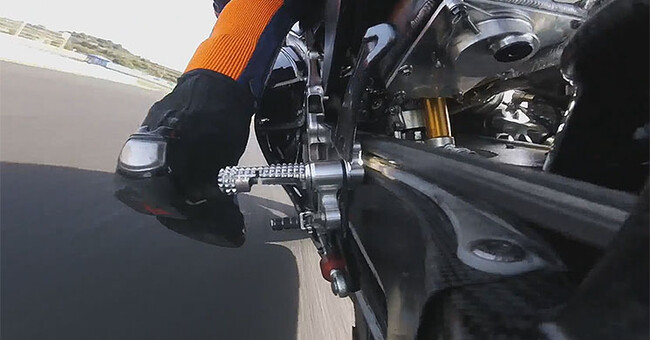 Pongámonos en situación: curva cerrada, tocas rodilla seguro. Lo que pasa es que el espacio entre el pie del piloto y el suelo es muy limitado. Si se utiliza el patrón convencional, levantar la punta del pie para subir de marcha puede ser complicado o incluso imposible sin arriesgar la estabilidad. Al invertir el patrón, los pilotos pueden presionar hacia abajo para subir de marcha, lo que resulta mucho más sencillo y seguro en estas situaciones límite.