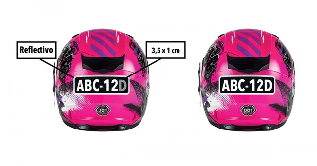 En Colombia la legislación obligaba hasta el pasado 2022 y desde hace 20 años (2002) a llevar un casco "impreso en la parte posterior (...) con el número de la placa asignada al vehículo, en letras y números tipo arial, reflectivas, cuyo tamaño será de 3.5 centímetros de alto y un ancho de trazo de un (1) centímetro".