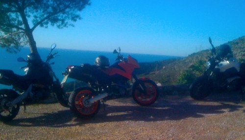 Esta mañana, al menos en Barcelona, hay un día luminoso con un sol radiante. ¡Olé!. Perfecto para las ganas de moto acumuladas. Puntualmente a las nueve de la mañana en la gasolinera habitual me encuentro con Ferran y Sergio. Seremos tres motos, dos Yamaha MT-03 y una KTM 640 Duke. Nos espera una matinal intensa de curvas. Los moteros somos un poco como las lagartijas: salimos con el sol, y desde primera hora de la mañana se ven numerosas motos.