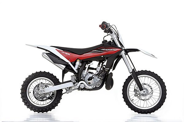 La primer que comentamos es la 2012 Husqvarna CR65, la denominada "moto para los pequeños campeones", con detalles muy parecidos a la TC 449 que luego veremos. Seis marchas, monocilíndrica de 65 cc, con suspensiones ajustables y toda la pinta de una motocross de verdad. Ruedas de 14/12", refrigeración por agua (dos radiadores), carburador Mikuni de 24mm... todo ello con un peso total sin carburante de 55 kg.