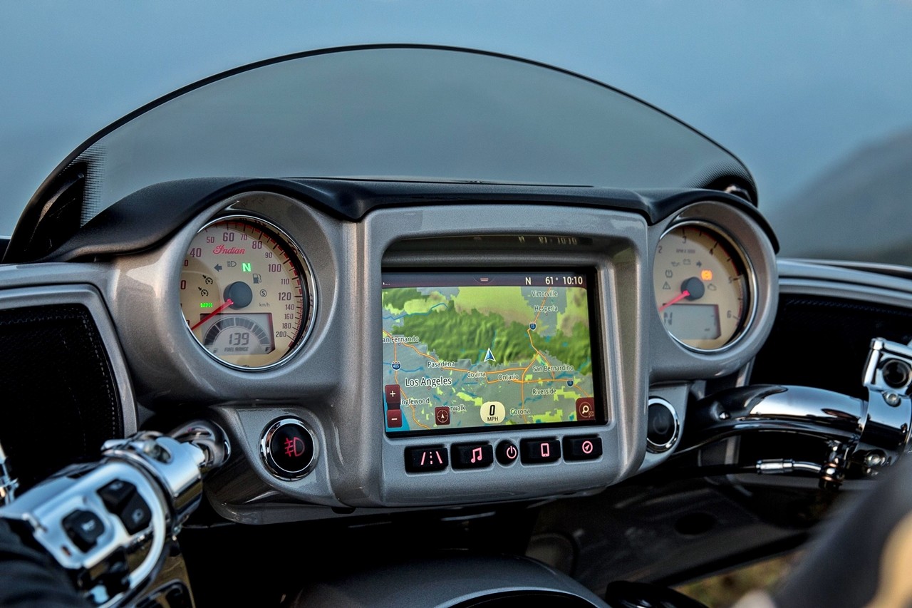 Con un tamaño de 7 pulgadas y una resuloción de 800x480 px, la RideCommand integra las funcionalidades del sistema de infoentretenimiento de las grandes cruiser americanas con un sistema de sonido de 100W en la Chieftain y 200W en la Roadmaster, además de conectar tu teléfono o sistema de comunicación mediante Bluetooth.